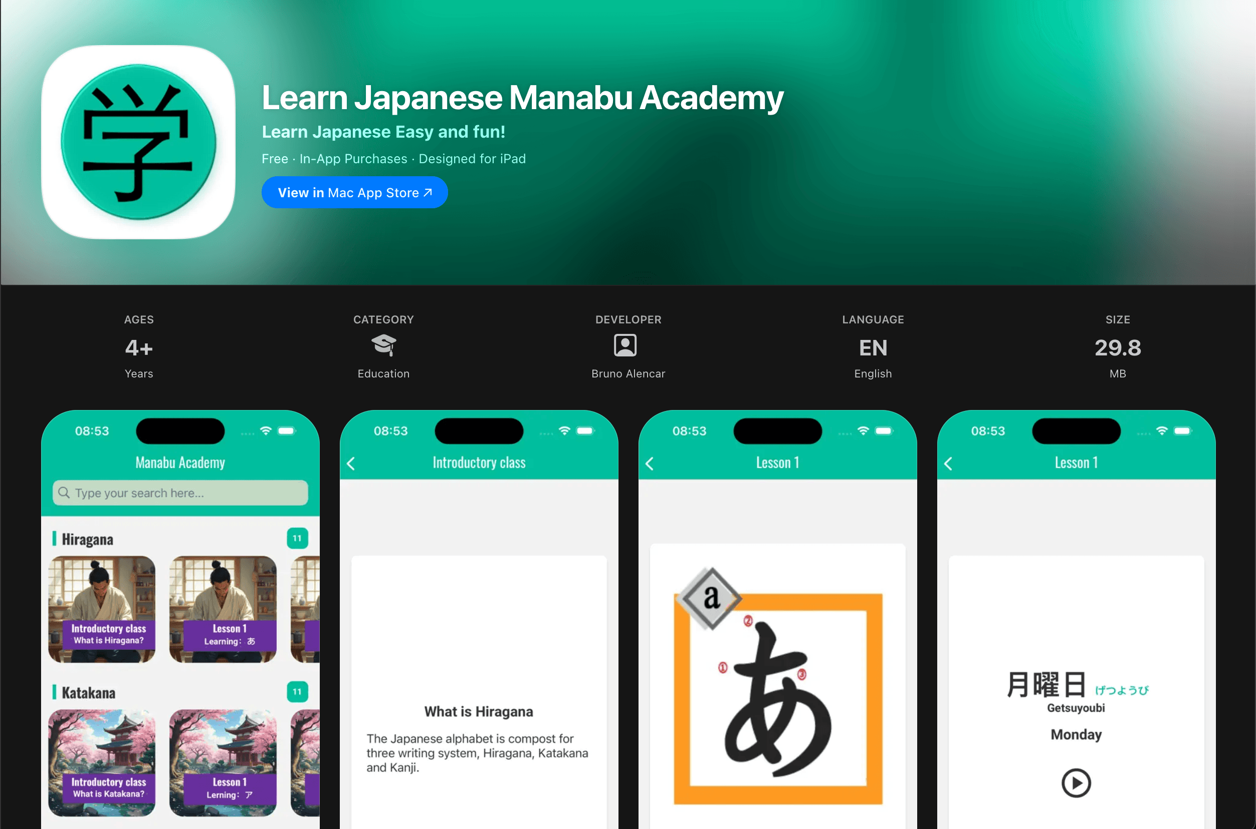 Learn Japanese with Manabu Academy in an entertaining and intuitive way, Hiragana, Katakana to more complex sentences, which in an easy-to-understand way Manabu Academy helps you learn Japanese! Unique learning experience!
